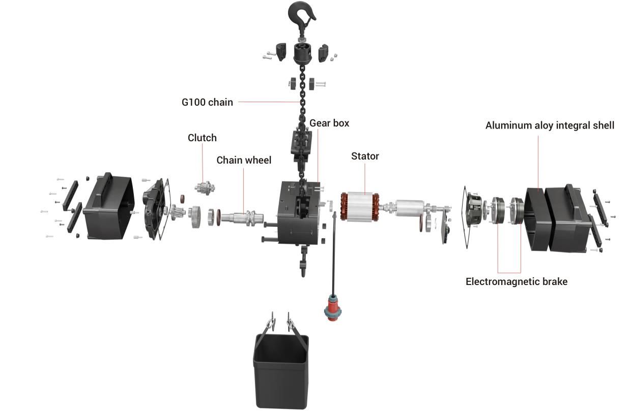Передача с косозубыми шестернями. Класс шестерен 6, изготовленные из высокопрочной легированной стали, уровень шума при работе <60 дБ (в полной нагрузке), тихая и элегантная работа.